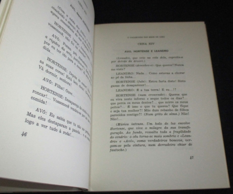 Farsa em 3 actos. Peça inspirada nos romances de cordel que os mendigos vendiam nas feiras e romarias, “O Vagabundo das Mãos de Oiro” é uma farsa toda ela caricatura, cor e poesia ingénua. Das onze figuras que nela entram, apenas duas são figuras humanas (Mestre Albino e Zé Guia). As outras, são bonecos de trapos e serradura movidos por cordéis…