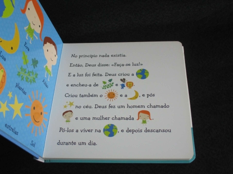 Histórias por imagens. Encadernação em capa dura. Ilustrado. Textos simples adaptados aos mais pequeninos compõem esta coleção de histórias bíblicas para partilhar em família. Uma seleção de histórias com ilustrações das palavras mais importantes, encorajando assim a criança a completar verbalmente as frases. Infantil (até 6 anos).