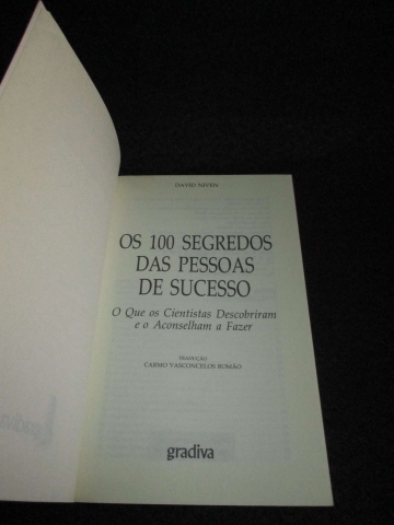O que têm em comum as pessoas de sucesso? David Niven reuniu neste livro os mas relevantes e actuais dados sobre o sucesso com base nas investigações de inúmeros cientistas, revelando o conjunto de atitudes comuns em pessoas cujas vidas são exemplos surpreendentes de realização e de êxito.