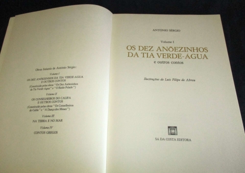 Esta é a primeira edição do primeiro volume das "Obras Infantis de António Sérgio" com os contos: Os Dez Anõezinhos da Tia Verde-Água; O Ratão Pelado; A Cabana dos Lobos.
