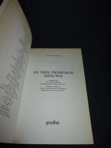 Hoje sabemos que o Universo teve um início (o Big bang) há cerca de 14 mil milhões de anos. Os Três Primeiros Minutos, saído em 1.ª edição na Gradiva em 1987 é «o» grande clássico sobre o Big Bang, e os clássicos são eternos.