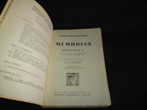 Memórias Memória V. Capa de brochura. Edição preparada e organizada por M. Lopes de Almeida, Professor da Universidade de Coimbra e César Pegado, 1.º Bibliotecário da Biblioteca da Universidade. Importante trabalho de António Caetano do Amaral, "um dos maiores escritores críticos da nossa história literária", publicado pela primeira vez nas Memórias da Academia das Ciências.