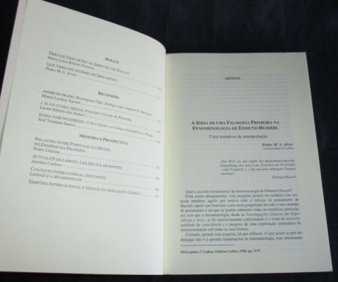 Revista Semestral do Centro e Departamento de Filosofia da Faculdade de Letras da Universidade de Lisboa. Do índice: A ideia de uma filosofia primeira na fenomenologia de Edmund Husserl; Kant, Weil: Duas leituras do Mal Radical; Arte e Natureza no século XVIII em Portugal; Problemas com a Justiça. Uma análise da argumentação do Livro I da República; Platão e Aristóteles. Duas teses sobre a substância e as categorias; Linguagem, metalinguagem e gramática em Ludwig Wittgenstein; Kafka e as metamorfoses da lei; Levinas. Invocação de um percurso filosófico; A avaliação no ensino da filosofia. Debate: Erro de Descartes ou Erro de um Título; Que verdade no erro de Descartes.