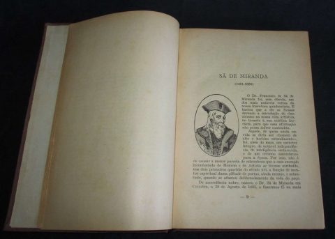Assinatura de posse na folha de guarda. Alguns sublinhados a lápis. Encadernação em tela cerada, com gravações a ouro na lombada e na pasta anterior. Rubricado pelo anotador. Antologia de composições líricas dos nossos principais poetas quinhentistas, que inclui uma breve biografia de cada um em jeito de apresentação. Ilustrada no texto com bonitos retratos desenhados dos biografados.