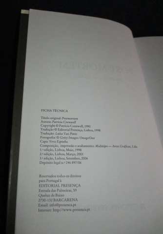 Esgotado no editor. Post-Mortem tem por heroína Kay Scarpetta, uma mulher detective ligada ao FBI que tenta encontrar um assassino que violenta sadicamente sucessivas mulheres sem que nenhum aspecto comum as una, excepto o facto de todas elas serem torturadas aos sábados de manhã. Contudo a eficácia profissional de Kay Scarpetta nem a todos agrada uma vez que o seu protagonismo não é bem visto num mundo eminentemente masculino.