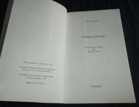 Em 1970, Antoni Tàpies na Introdução desta recolha de textos, enuncia de forma muito clara uma orientação artística, portanto cultural, política. Na esteira de uma longa prática europeia de escritos teóricos sobre arte mas querendo-se distante de um pendor programático -- Herdeiro e ainda protagonista de uma época em que tudo está em crise, eu continuo a acreditar que o mais aceitável dos sistemas é não ter, por princípio, nenhum --, aquele que é hoje um dos mais respeitados artistas plásticos do século XX delimita inequivocamente o que considera ser o seu território, recusando as estéticas «dos que julgam que hoje tem tanta importância um Guernica como um cartaz a anunciar umas calças». Essa rejeição feroz parece ser uma componente da velha aversão dos artistas à estética, porque «há estéticas que prejudicam não só a arte como toda a sociedade», se entendidas como função dos valores morais e políticos: quando digo que há ideias estéticas prejudiciais, quero dizer que elas encerram uma política e uma moral que são igualmente um mal para a sociedade. Parte da pertinência desta publicação está na sua impressionante actualidade e na acutilância das reflexões implícitas.