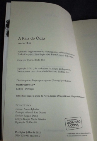 Tradução do Francês de Raquel Dutra Lopes. Oslo, numa fria tarde de dezembro. Uma criança descalça anda perdida pelas ruas. Está prestes a ser atropelada por um elétrico, quando, no último momento, é salva por um desconhecido que surge do nada. Pouco depois, sussurra à sua mãe, a criminalista Inger Johanne Vik, ainda mal refeita do susto: «A senhora estava morta…» A partir daí, Johanne e a sua família veem-se envolvidas na investigação de estranhos homicídios.