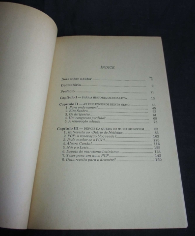 «Com certas batalhas sucede que o mérito já está em travá-las, mesmo que seja mais do que problemático vencê-las. O conformismo e a desistência sem luta é que amesquinham, não o insucesso final. Pelo menos ficamos de contas saldadas com as nossas convicções e com a nossa história pessoa..." Do índice: Para a História de uma Luta; As Reflexões de Bento Nemo; Depois da Queda do Muro de Berlim.