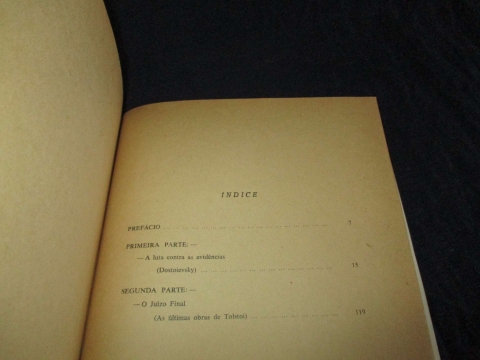 Do índice: Prefácio; A Luta contra as evidências (Dostoievsky); O Juízo Final (As últimas obras de Tolstoi).