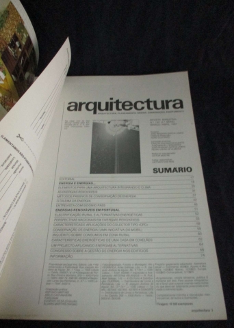 Energias Renováveis. Elementos para uma arquitectura integrando o clima; Métodos passivos de conservação de energia; O Dilema da energia; Electrificação rural e alternativas energéticas; Perspectivas nacionais em energias renováveis; características energéticas de uma casa em Covelães; um projecto aplicando energias alternativas; Congresso sobre a gestão de energia nos edifícios.