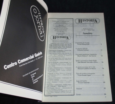 O assassínio de Trotsky por Teresa Mesquitela; A Revolução de 1383/85 por Orlando Cardoso; Um jornal republicano clandestino por Maria Helena C. dos Santos; A música no tempo de D. José por Manuel Cadafaz de Matos; Tipos de azulejos portugueses por Vítor Sousa Lopes.