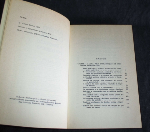 Do índice: A Luta pela instauração de uma ordem democrática; A revolução democrática e a revolução socialista; O reforço do estado democrático e a defesa das liberdades, a defesa da estabilidade económica e financeira com vista ao desenvolvimento, o prosseguimento da descolonização.