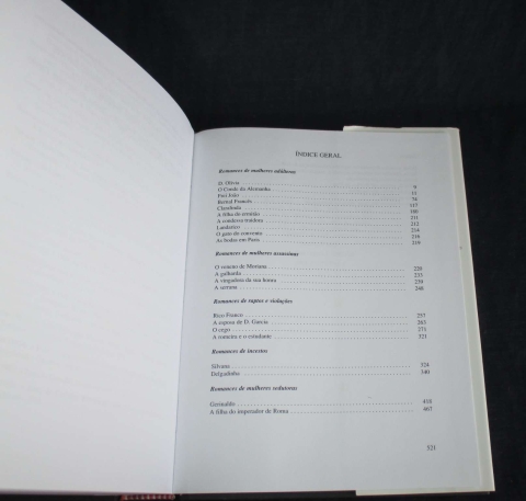Do índice: Romances de mulheres adúlteras; Romances de mulheres assassinas; Romances de raptos e violações; Romances de incestos; Romances de mulheres sedutoras.
