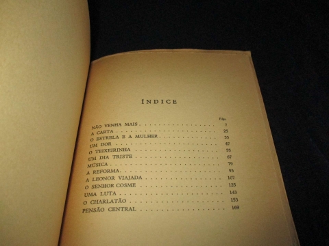 Do índice: Não venhas mais; um destino; o estrela e a mulher; uma dor; o teixeirinha; um dia triste; Música; a reforma; a Leonor Viajada; o senhor cosme; uma luta; o charlatão; pensão central.
