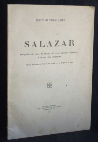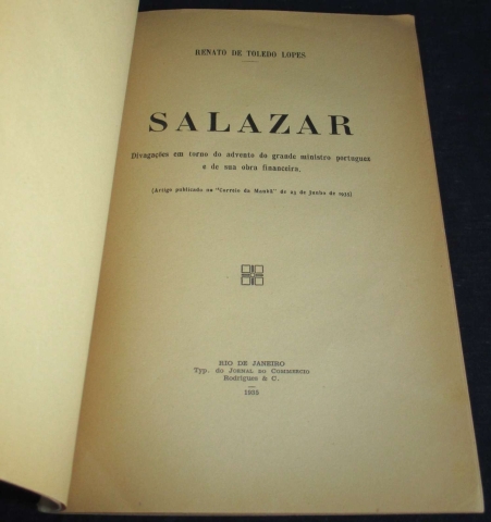 Livro: Salazar Divagações em torno do Advento do Grande Ministro Portuguez e de sua Obra Financeira.