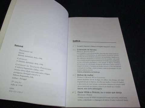 Dos Evangelhos à aurora da psicanálise, passando pelas lendas medievais e os quadros da Renascença, a imagem de Salomé agiganta-se e forma-se o mito, enriquecido por aluviões do imaginário dos homens. O banquete de Herodes transforma-se no cenário onde se representa a tentação do sacrilégio, o medo do desejo, a ideia do feminino e os próprios desafios da arte.