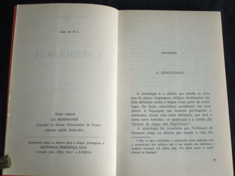 Num mundo onde a comunicação se tornou aspecto dominante e tende a ganhar cada vez maior importância, é vital conhecer os modos de funcionamento dos códigos que nos permitem comunicar. Este livro destina-se a pôr ao alcance do leitor uma síntese dos saberes que convergiram para a constituição deste domínio do conhecimento. Os capítulos principais abordam aspectos fundamentais como: as funções do signo e os diferentes meios de comunicação; a forma e a substância do signo; os códigos lógicos; os códigos estéticos; os códigos sociais. Em conclusão é apresentada uma interessante reflexão sobre as mitologias do nosso tempo, além de uma breve bibliografia de grande utilidade para quem quiser ir mais longe. Nomes inevitáveis e bem conhecidos como Saussure, McLuhan, Jakobson, Barthes, Peirce, Greimas e tantos outros são aqui uma referência constante.