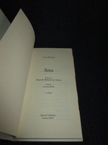 Jytte Bonnier faz-nos uma comovente descrição da sua filha (seis anos após a violenta morte) com uma intensidade luminosa que corresponde, afinal, ao carácter forte e célere de Snu. A literatura sueca foi enriquecida com o retrato invulgar que uma mãe desenha de um filha não menos invulgar. A dor de Jytte Bonnier é profunda, nela as palavras tomam o lugar das lágrimas. Snu, entre a dislexia e a tempestuosidade, surge deste texto ardente e viva.