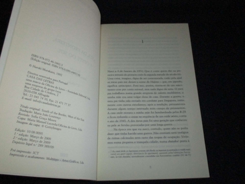 Na primeira semana do primeiro mês do primeiro ano da segunda metade do século XX, ao protagonista, que também faz as vezes de narrador, é dado o nome de Hajime, que significa «início». Filho único de uma normal família japonesa, Hajime vive numa província um pouco sonolenta, como normalmente todas as províncias o são. Nos seus tempos de rapazinho faz amizade com Shimamoto, também ela filha única e rapariga brilhante na escola, com quem reparte interesses pela leitura e pela música. Juntos, têm por hábito escutar a colecção de discos do pai dela, sobretudo «South of the Border, West of the Sun», tema de Nat King Cole que dá título ao romance.