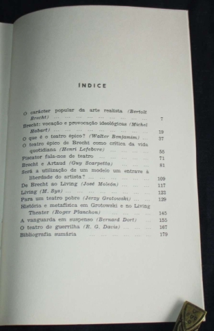 Texos de Bertolt Brecht, Erwin Piscator, Walter Benjamin, Henri Lefebvre, Jerzy Grotowsky, Roger Planchon, Michael Habart, Guy Scarpetta, José Moléon, M. Sys, Bernard Dort, R. D. Davis.