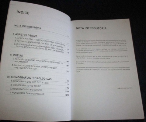 Começa-se com um capítulo de Aspetos Gerais onde se abordam temas como a hidrometereologia e energia. Isto é, preciosa informação base de áreas fundamentais para o desenvolvimento e qualidade de vida de um país, como são a água disponível e o potencial hidroelétrico. Num II Capítulo foca-se o importante tema das Cheias, tema da maior atualidade para a gestão do risco e a proteção de pessoas e bens. Segue-se, no III Capítulo, um significativo conjunto de Monografias Hidrológicas de alguns rios Futi, Cele, Tembe, Govuro e Changane. Ou seja, informação imprescindível para todo o tipo de intervenção que se deseje fazer nestas bacias. Sem dúvida que para um país em franco desenvolvimento e infraestruturação, como é o caso de Moçambique, é ainda mais relevante a importância desta compilação de preciosa e valiosa informação de base. Moçambique | Ordenamento Hídrico | Recursos Hídricos