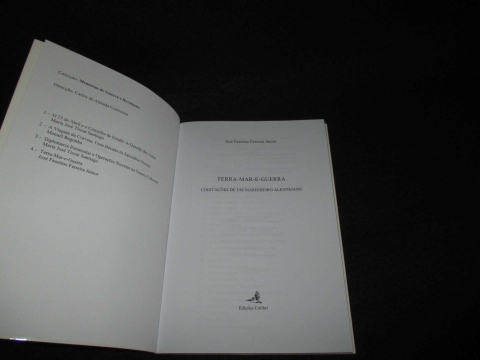 Cogitações de um Marinheiro Alentejano. Capa de brochura. Ilustrado. Colectânea de relatos, memórias e cogitações escritos pelo Comandante José Júnior, onde, num tom intimista, irónico e repleto de humanismo, nos é permitido saborear curiosos episódios da sua diversificada carreira naval, quer a bordo em Moçambique ou nos Açores, quer em terra, nomeadamente como Fuzileiro Especial na guerra da Guiné, ou nos confins dos mares da China em Macau. De permeio, discorre e pinta, mais uma vez de forma intensa e apaixonada, as suas vivências no Alentejo para onde regressou e se radicou após a sua aposentação, desvendando-nos e caracterizando bem a sua terra natal, detendo-se também com frequência em reflexões acerca da situação e evolução política do País, com especial enfoque no "25 de Abril". Este livro, que surge por iniciativa dos seus camaradas do curso "Luís de Camões", não exige uma leitura seguida pois, em qualquer página em que o abrirmos, facilmente encontramos mensagens de esperança ou algo que nos emociona e nos merece reflexão. [José Carlos de Brito Subtil]. Testemunhos.