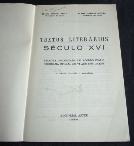 Livro: Textos Literários Séculox XII a XV / Século XVI