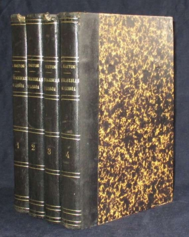 Encadernações coevas em meia de pele com ferros gravados a ouro nas lombadas. Edição ilustrada com belíssimas gravuras desenhadas por Manuel de Macedo, e superiormente executadas pelos gravadores Alberto, Pastor e Severini. As estampas encontram-se impressas em folhas separadas das páginas de texto, ao longo dos 4 volumes que compõem a obra.