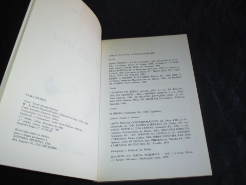 Prémio de Ficção do Pen Clube 1986. Brochado. Capa do escultor Francisco Simões. ...a maravilha que deve ser escrever um livro: a invenção dentro da memória; a memória dentro da invenção; e toda essa cavalgada de uma grande fuga, todo esse prodígio de umas poligâmicas núpcias, secretas e arrebatadas, com a feminina multidão das palavras: as que se entregam, as que se esquivam; as que é preciso perseguir, seduzir, ludibriar; as que por fim se deixam capturar, palpar, despir, penetrar e sorver, assim proporcionando, antes de se evaporarem, as horas supremas de um amor feliz. Não há matéria mais carnalmente incorpórea; nem mais disposta a por amor ser fecundada.