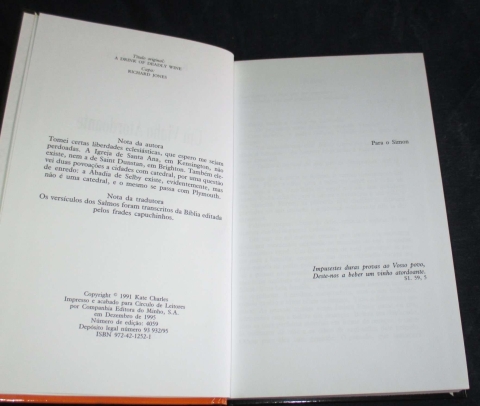A linhagem de escritoras inglesas de romances policiais é longa e de enorme qualidade, e Kate Charles poderia fazer parte dela… não fosse o facto de ter nascido nos Estados Unidos. No entanto, os seus livros policiais têm como subtítulo “Um mistério clerical”, são passados em Inglaterra e seguem a linha tradicional das histórias policiais inglesas: ambientes relativamente fechados, conservadores, frequentemente rurais, com um naipe de actores algo excêntricos e protagonistas muito perspicazes. Um vinho atordoante é o primeiro de uma série de cinco volumes que tomou o nome genérico de Livro dos Salmos: cinco histórias passadas à volta de outras tantas igrejas e quem a elas está ligado, com mortes misteriosas, os suspeitos do costume, voltas e reviravoltas, e um casal de advogados que acaba por solucionar o caso.