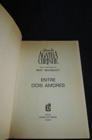 - Mary Westmacott Entre dois amores Um Pseudónimo de Agatha Christie. Tradução de Anael Nunes. Rabisco na folha de rosto, 480 g
