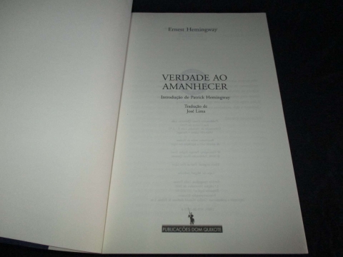 "Há cerca de dois anos, por alturas do centenário da morte de Hemingway, o seu filho Patrick decidiu publicar-lhe um romance inédito, ou melhor, pegou num manuscrito não revisto, com mais de 800 páginas, e fez dele uma versão reduzida. É esse inédito que agora nos chega em tradução portuguesa, e que dá pelo título de "Verdade ao Amanhecer". É sabido que Hemingway trabalhava com grande rigor os seus originais e os reeescrevia por diversas vezes. Daí que a qualidade estilística deste romance não será certamente a sua melhor. Mas os temas essenciais que perpassam pela sua obra, sobretudo a dos últimos tempos, estão lá. Uma caçada ao leão na última das suas viagens à África Oriental, com a sua quarta mulher, Mary Welsh, em 1953, traz à tona um motivo que lhe é caro: o papel da violência na sobrevivência do homem, aqui no ambiente natural da caça, rito ancestral, de sangue e sobrevivência, que manifesta ao mesmo tempo um profundo respeito pela vítima, que coloca o homem e as suas fragilidades, mas também as suas forças, frente à morte. E ainda a camaradagem, a paixão pelo carácter forte, a admiração pela dignidade animal.