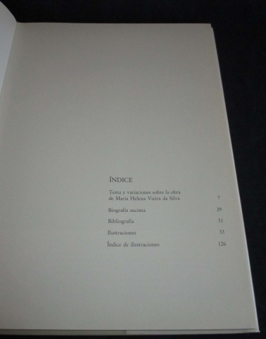 Do índice: Tema y variaciones sobre la obra de Maria Helena Vieira da Silva; Biografia sucinta; Bibliografia; Ilustraciones.