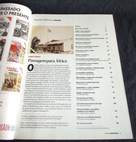 O império africano é hoje mais conhecido e lembrado pelo seu fim dramático do que pela sua lenta formação. Se 1975 marcou as independências africanas ao cabo de uma guerra de 13 anos de duração, muitas outras datas de um passado não tão remoto como vulgarmente se julga têm tendência a cair no esquecimento. No período final do Estado Novo era recorrentemente invocada, como argumento legitimador para a continuação da guerra, uma alegada presença de 500 anos em África. Se é verdade que, historicamente, os portugueses foram os europeus pioneiros nos contactos com os povos e as culturas subsarianas, não é menos certo que só a partir de finais do século XIX e inícios do século XX (há uns escassos cem anos, portanto), os territórios de Angola, Moçambique e Guiné foram militarmente ocupados na sua integralidade, abrindo o caminho a uma posterior colonização que apenas fluiria quando o século passado ia já adiantado, e que não é abordada nesta edição, visto termos decido limitarmo-nos ao período da construção desta realidade.