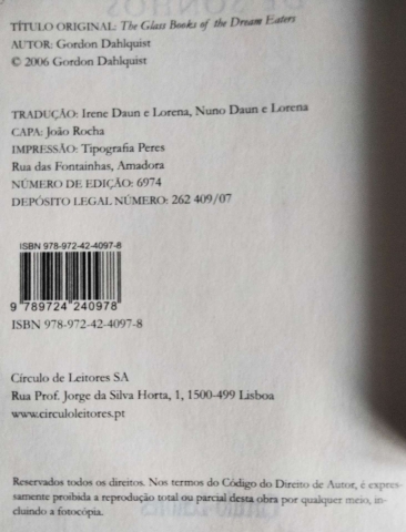 Dim. - +/- (15,5 x 24,5) cm; estado = usado; capa dura; 769 pgs.; 1ª edição nº 6974; 2007; 12 / 25; ISBN - 9789724240978; quina da lombada da capa, conforme foto