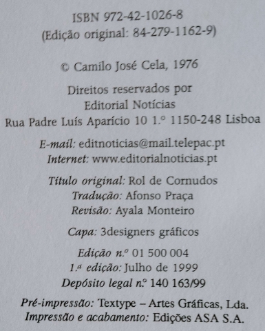 Dim. - +/- (15,5 x 23,5) cm; estado = usado; capa dura; 203 pgs.; 1ªedição; 1999; ISBN - 9724610268