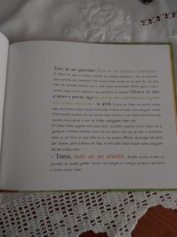 O Tomé queria mesmo ser poema. Já sabia o que devia fazer para ser o menino mais lindo do mundo, para tentar, pelo menos tentar, ser um anjo. Mas isso era tarefa para muito tempo, era coisa que lhe ia demorar, pelas suas contas, a vida toda! Ele queria ser poema quanto antes.