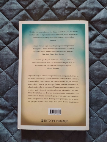 A vida de Allyson Healey que sempre foi planeada e organizada, muda no momento que conhece Willem, um ator de espírito livre, que a convida a ir com ele a Paris e a adiar todos os seus planos. Allyson não consegue resistir e decide acompanhá-lo, uma decisão inesperada que a leva a vinte e quatro horas de romance, liberdade e intimidade que irão mudar a sua vida. Apenas Um Dia é um romance que nos fala de amor, mágoa, viagens, identidade e das contingências provocadas pelo destino, mostrando que, por vezes, para nos encontrarmos a nós próprios, temos de nos perder primeiro...