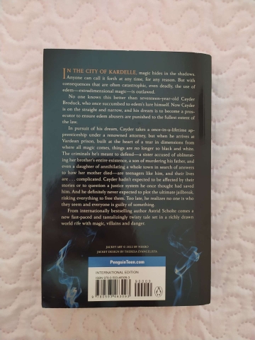 But when he meets the three criminals he's supposed to defend, it no longer seems so black and white. They're teenagers, like him, and their stories are . . . complicated, like his. Vardean, the prison where Cayder's new clients are incarcerated, also happens to be at the very heart of the horrible tear in the veil between their world and another dimension--where all magic comes from.