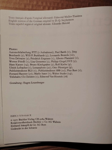 Publicação em quatro idiomas (incluindo o francês, inglês e espanhol), com 170 fotografias da Suiça e texto de Conrad Streit.