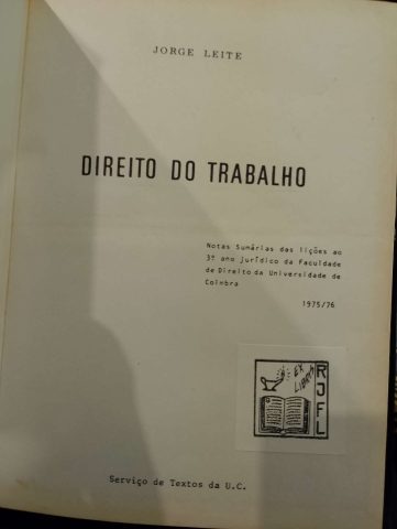 Direito ao trabalho -Legislação / Textos de apoio ás lições do Dr. Jorge Leite ao 3º Ano Jurídico da Faculdade de Direito - Coimbra 1976