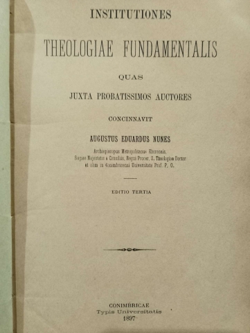 Institutiones Theologiae Fundamentalis, quas juxta probatissimos Auctores , Concinnavit Augustus Eduardus Nunes