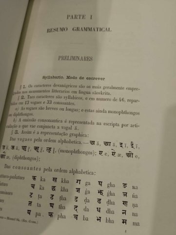 I - Manual para o estudo do Sãoskrito Classico - Tomo I (Resumo Grammatical)