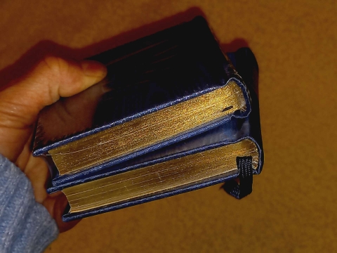 Edição de colecionador, encadernação capa dura em azul com detalhes dourados e cortes laterais dourados.