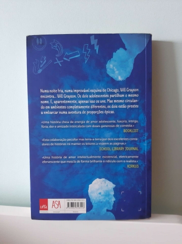 "Evanston não fica muito longe de Naperville nos subúrbios de Chicago, mas os jovens Will Grayson e Will Grayson bem que podiam viver em planetas diferentes. Quando o destino os leva à mesma encruzilhada, os Will Graysons veem as suas vidas a sobreporem-se e a seguirem novas e inesperadas direções. Com um empurrão de amigos novos e velhos - incluindo o enorme e enormemente fabuloso Tiny Cooper, jogador ofensivo na equipa de futebol americano da escola e autor de musicais - Will e Will embarcam nas suas respetivas aventuras românticas e na produção épica do musical mais extraordinário da história."