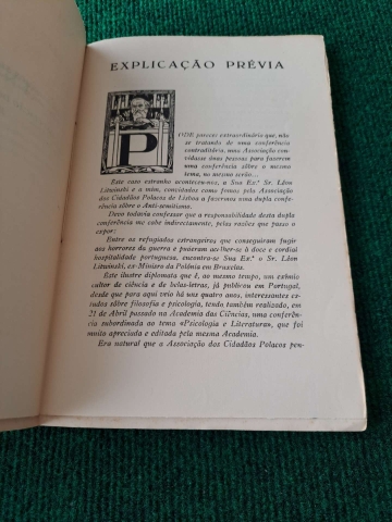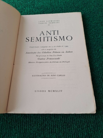 Livro em muito boas condições atendendo à idade. Miolo íntegro. Ligeiras evidências de desgaste no exterior do livro. Livro em língua portuguesa e francesa. Esgotado nas livrarias. Ilustrado por João Carlos. Conferências de denúncia do anti-semitismo em plena II Guerra Mundial (1944). Envio grátis em correio editorial normal. Envio em correio registado acresce 2,15 euros. Se tiver alguma dúvida não hesite em perguntar.