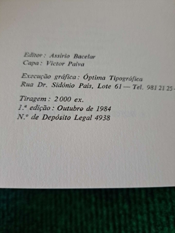 Livro em muito boas condições. Esgotado nas livrarias. Tiragem limitada a 2000 exemplares. Envio grátis em correio editorial normal. Envio em correio registado acresce 2,15 euros. Se tiver alguma dúvida não hesite em perguntar.