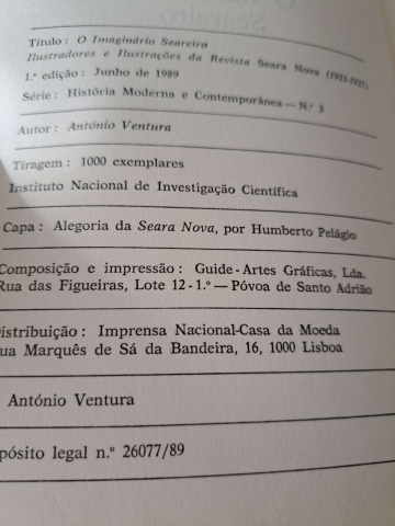 Livro em excelentes condições. Esgotado nas livrarias. Profusamente ilustrado. Tiragem limitada a 1000 exemplares. Título completo: O Imaginário Seareiro - Ilustradores e Ilustrações da Revista Seara Nova (1921-1927). Envio grátis em correio editorial normal. Envio em correio registado acresce 2,15 euros. Se tiver alguma dúvida não hesite em perguntar.