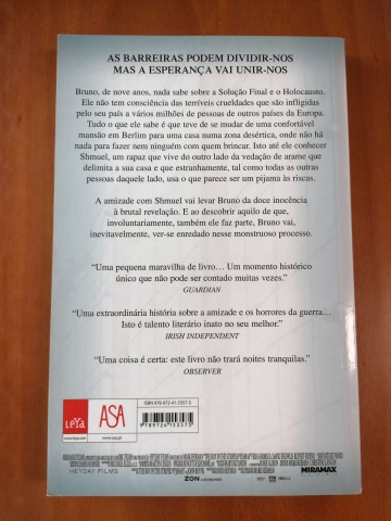 Ao regressar da escola um dia, Bruno constata que as suas coisas estão a ser empacotadas. O seu pai tinha sido promovido no trabalho e toda a família tem de deixar a luxuosa casa onde vivia e mudar-se para outra cidade, onde Bruno não encontra ninguém com quem brincar nem nada para fazer. Pior do que isso, a nova casa é delimitada por uma vedação de arame que se estende a perder de vista e que o isola das pessoas que ele consegue ver, através da janela, do outro lado da vedação, as quais, curiosamente, usam todas um pijama às riscas. Como Bruno adora fazer explorações, certo dia, desobedecendo às ordens expressas do pai, resolve investigar até onde vai a vedação. É então que encontra um rapazinho mais ou menos da sua idade, vestido com o pijama às riscas que ele já tinha observado, e que em breve se torna o seu melhor amigo…