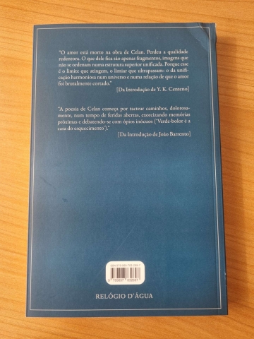 “A poesia de Celan começa por tactear caminhos, dolorosamente, num tempo de feridas abertas, exorcizando memórias próximas e debatendo-se com ópios inócuos (‘Verde-bolor é a casa do esquecimento’).” [Da Introdução de João Barrento]